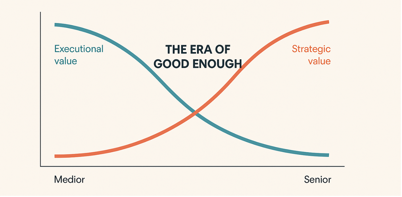A demokratizálódás láthatóvá teszi, mit jelent ma valójában seniornak lenni. Hosszú ideig a kivitelezési fölény volt a megkülönböztető érték. Ez az előny azonban eltűnik, amikor a kivitelezés technikai része már nem szűk keresztmetszet.