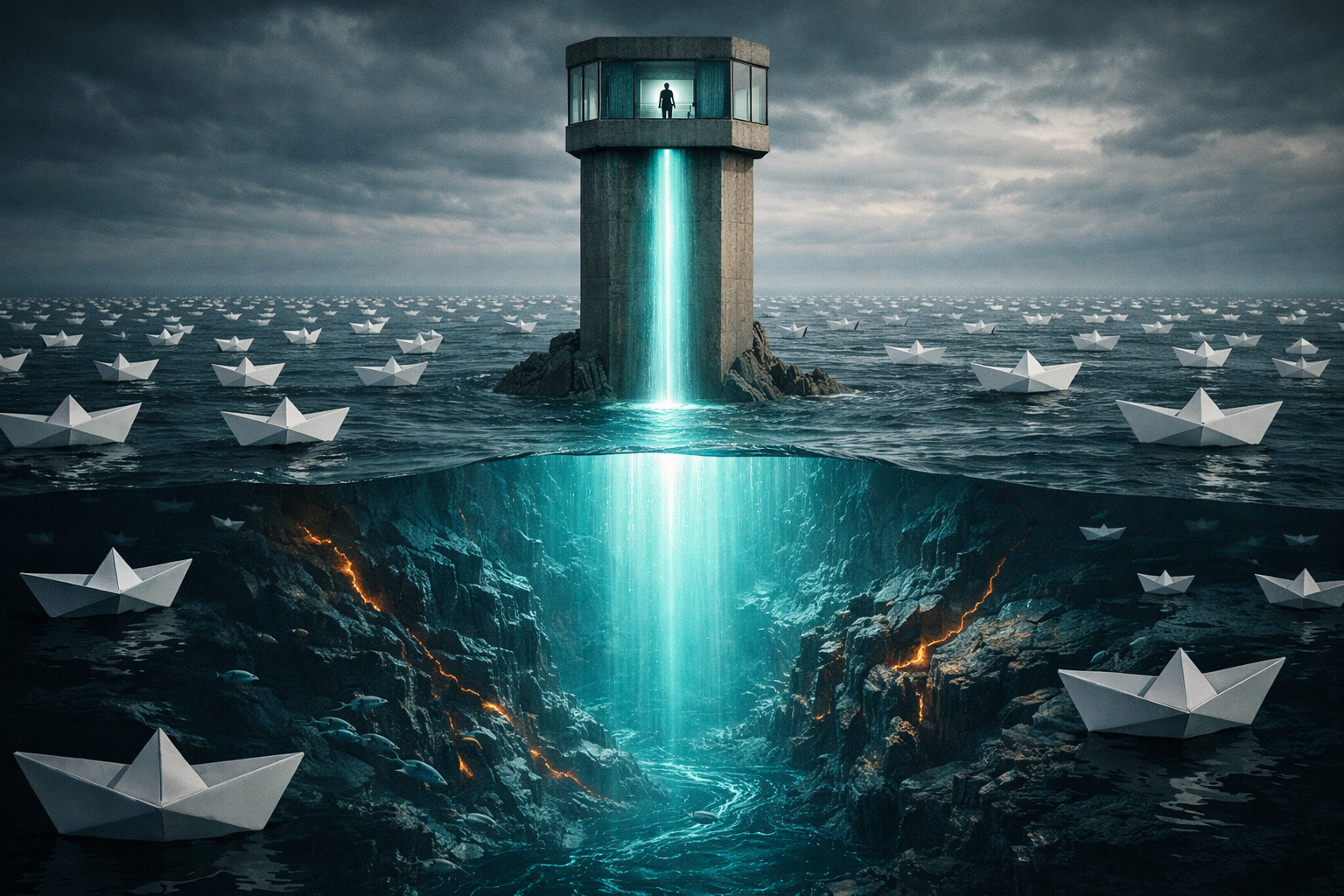 Látni a kivitelezés mögé: A papírhajók a bárki által elérhető tucatmegoldások. A mélybe hatoló fénysugár a stratégiai értelmezés, amely a technikai megvalósításon túl a rendszer valódi összefüggéseit tárja fel.